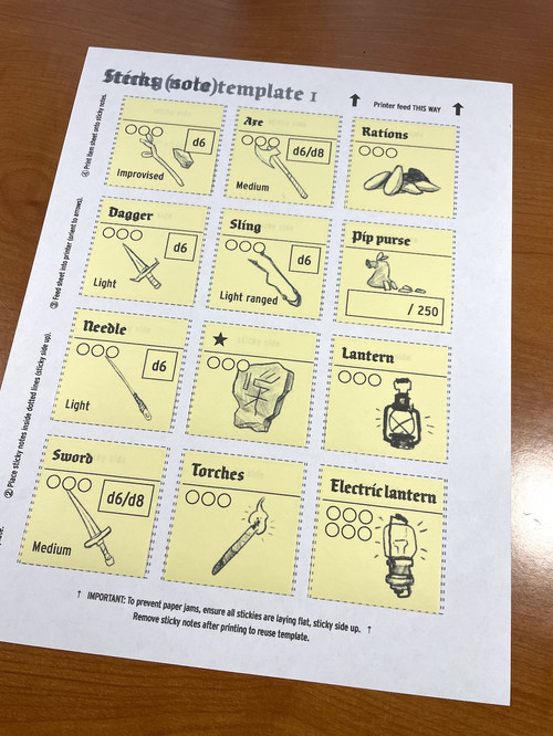 Print item cards directly onto sticky-notes. The sticky item template and printing guide is now available as a pdf.